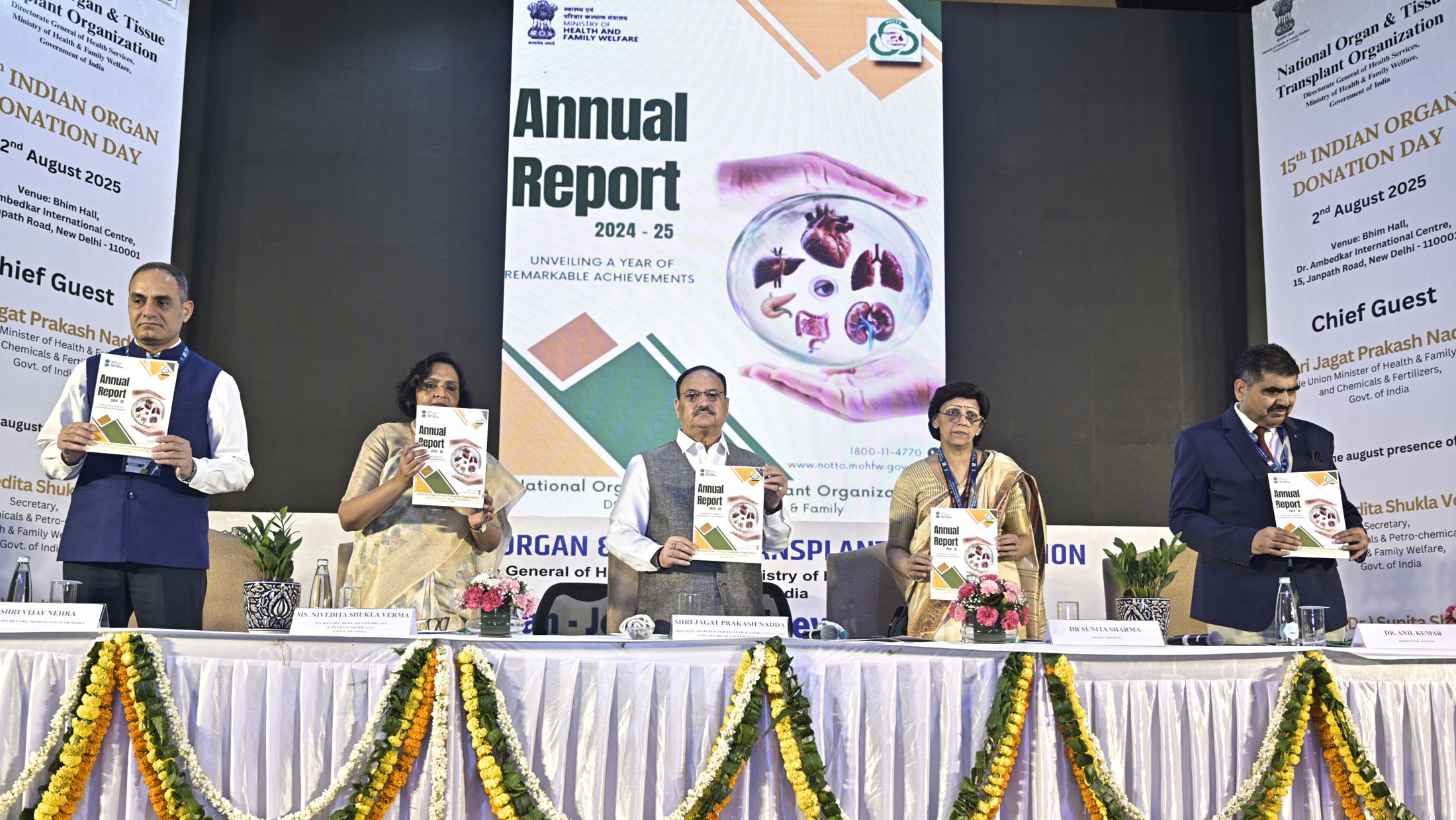Dilip Guha ★ New Delhi : National Organ and Tissue Transplant Organisation (NOTTO) under the aegis of Directorate General of Health Services, Ministry of Health and Family Welfare, Government of India, organised an event on the eve of the 15th Indian Organ Donation Day on 2nd August, 2025, at Dr. Ambedkar International Centre, 15 Janpath Road, New Delhi. The event was graced by Hon’ble Union Minister of Health & Family Welfare and Chemicals & Fertilisers, Shri J.P. Nadda, as the Chief Guest.