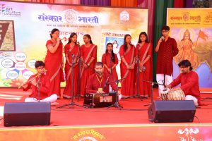 The Delhi Kala Utsav, which gives a powerful and dignified voice to Delhi’s cultural consciousness, was organised with great reverence under the aegis of Sanskar Bharati. As part of this esteemed festival, Shri Prannath Kala Sangam Foundation presented a soulful rendition of the Sanskar Bharati theme song on day one.