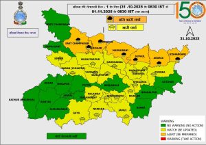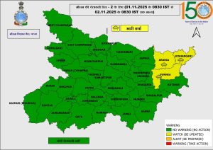 সাশ্রয় নিউজ ডেস্ক ★ পাটনা : বিহারে ফের একবার আবহাওয়ার বড় পরিবর্তনের ইঙ্গিত দিল ভারতীয় আবহাওয়া দফতর (India Meteorological Department – IMD)। আবহাওয়া দফতর জানিয়েছে, আগামী ২৪ ঘণ্টার মধ্যে রাজ্যের একাধিক জেলায় ভারী থেকে অতি ভারী বৃষ্টিপাতের সম্ভাবনা রয়েছে। আবহাওয়া দফতর স্পষ্ট করে বলেছে, “Day 1 (valid till 0830 hrs IST of 01 November 2025): Very heavy rainfall very likely at isolated places over East Champaran, Sitamarhi, Sheohar, Madhubani, Supaul, Araria, and Kishanganj. Heavy rainfall very likely at isolated places over Purnea, Madhepura, Saharsa, Khagaria, Muzaffarpur, Darbhanga, Gaya, Nawada, Lakhisarai, Sheikhpura, Nalanda, Jamui, Samastipur, Saran, Siwan, and Vaishali.”