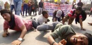 ধর্মতলায় রাস্তায় হামাগুড়ি দিয়ে প্রতিবাদ আন্দোলন চাকরিপ্রার্থীদের