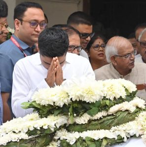 পশ্চিমবঙ্গ বিধানসভা ভবন চত্বরে মুকুল রায়ের মরদেহ। শেষ শ্রদ্ধা অভিষেক বন্দ্যোপাধ্যায় সহ অন্যান্যদের। ছবি : সংগৃহীত।
