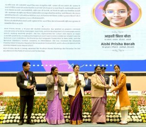 Aishi Prisha Borah has demonstrated remarkable innovation in the field of science and technology through projects focused on natural farming practices, newspaper mulching, and the development of a machine to manufacture pencils from newspaper waste. She has represented her school and region at several prestigious platforms, including the Regional Level State Science Exhibition, the Rashtriya Bal Vaigyanik Pradarshini in New Delhi, and the National Children’s Science Congress in Ahmedabad. Her achievements include receiving the INSPIRE MANAK State Award (2022) and the Dinanath Pandey Silver Innovator Award at the Innovation Festival 2025. Her consistent pursuit of sustainable solutions and scientific innovation has earned her the Pradhan Mantri Rashtriya Bal Puraskar for excellence in Science & Technology.